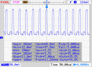 | PWM Frequency (Hz) | 21000 ? | 20410 ? | ||||