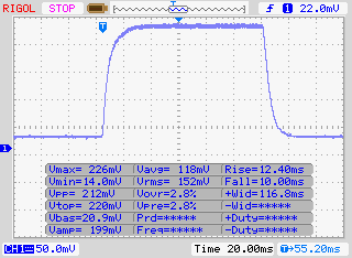 | 22 ms ... steigend ↗ und fallend ↘ kombiniert | ↗ 12 ms steigend | |