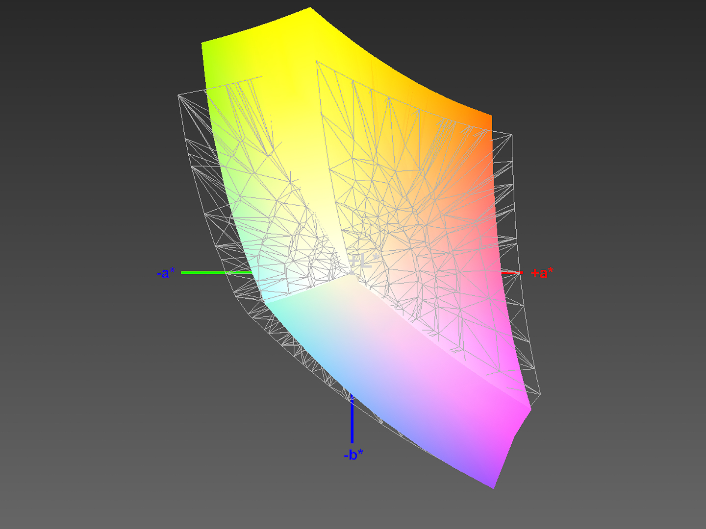 Farbabweichungswerte von 3,45 (ColoChecker) und 2,28 (Graustufen) im Auslieferungszustand sind auch für ein IPS-Panel spitze. Hobby-Bildbearbeiter könnten zumindest bei unserem Testsample ohne weitere Kalibrierung und Profilierung loslegen. Ähnlich gut macht es im Testfeld nur das Dell E7470. Als gut, aber nicht sehr gut ist hingegen die 55-prozentige Abdeckung des großen Profi-Farbraums AdobeRGB einzuschätzen. Da geht heutzutage immer öfter noch etwas mehr, wie der Bildschirm des Dell beweist, der den kleineren, extrem verbreiteten sRGB-Farbraum zu 96 % abecken kann. Hier schafft das Testgerät "nur" 84 %.