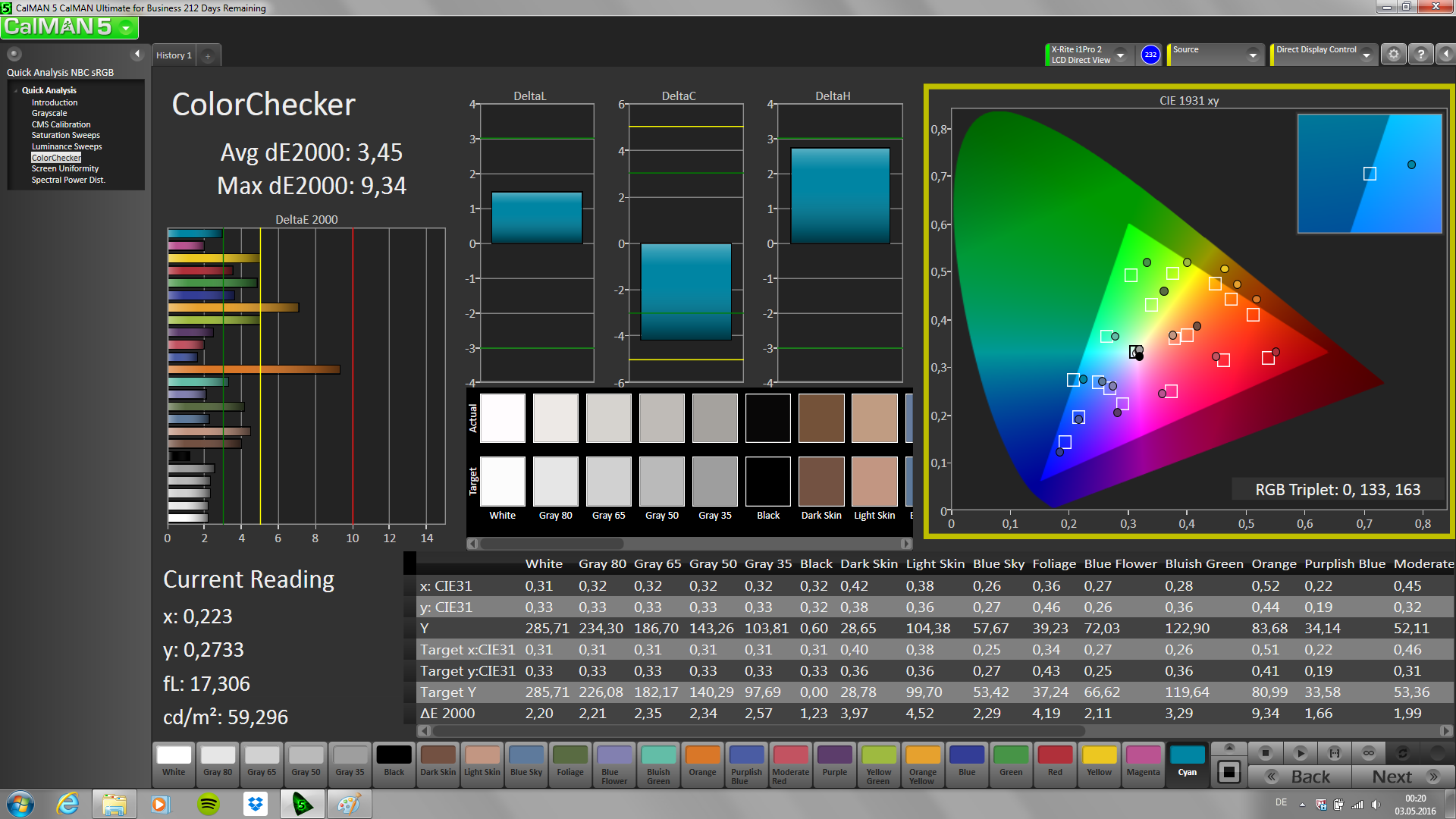 ΔE ColorChecker Calman: 3.45 | ∀{0.5-29.43 Ø4.78}
