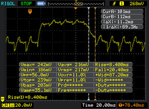 | 26 ms ... steigend ↗ und fallend ↘ kombiniert | ↗ 13 ms steigend | |