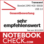 » Die Transcend StoreJet 25M3 500GB ist derzeit ab 71.- bei Amazon.de erhältlich