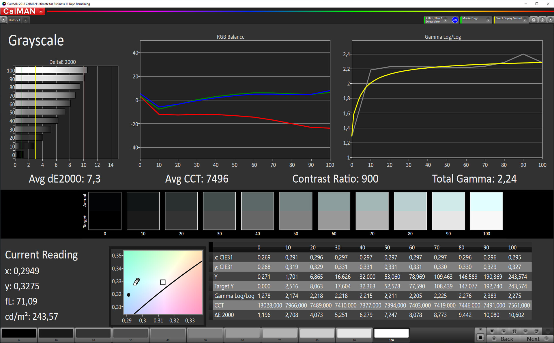 ΔE Greyscale Calman: 7.3 | ∀{0.09-98 Ø5}