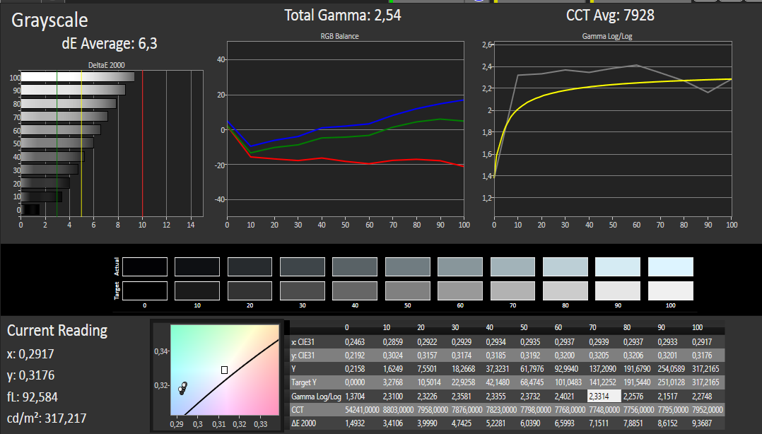 ΔE Greyscale Calman: 6.3 | ∀{0.09-98 Ø5}
