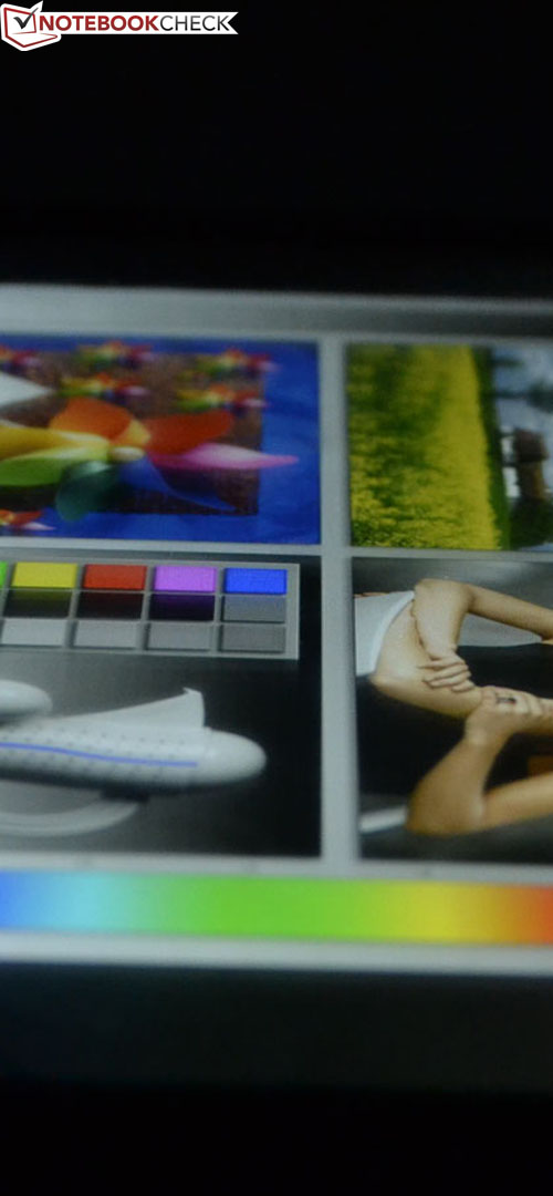 Die Blickwinkel sind Technologie-bedingt bei einem IPS-Panel nahezu absolut, da macht auch das Trekstor Surftab Ventos 10.1 keine Ausnahme. Selbst bei extremen Sichtwinkeln bleiben die Farben stabil, nur die Helligkeit und der Kontrast verringern sich geringfügig. Allerdings sind bei dunklen Bildinhalten am Bildrand helle Lichthöfe zu erkennen, bei hellen Bildinhalten weist unser Testgerät zwei aufgehellte Bildfehler auf. Im Alltagsbetrieb fallen diese Mängel dennoch weniger störend auf.