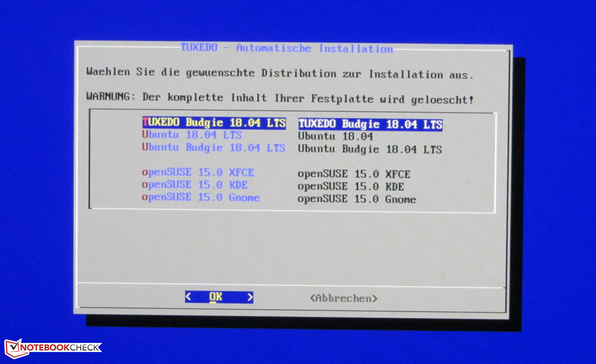 Das uns zur Verfügung gestellte Testgerät ist mit dem Betriebssystem Tuxedo Budgie 18.04.01 LTS 64 Bit bestückt. Hierbei handelt es sich um eine von Tuxedo an die eigenen Bedürfnisse angepasste Vereinigung der Ubuntu-Linux-Distribution (Ubuntu 18.04.01 LTS) mit dem Budgie Desktop der Linux-Distribution Solus. Da das Betriebssystem auf der LTS-Version (Long Term Service) von Ubuntu basiert, gibt es für einen Zeitraum von 5 Jahren Unterstützung und Aktualisierungen für das Betriebssystem.