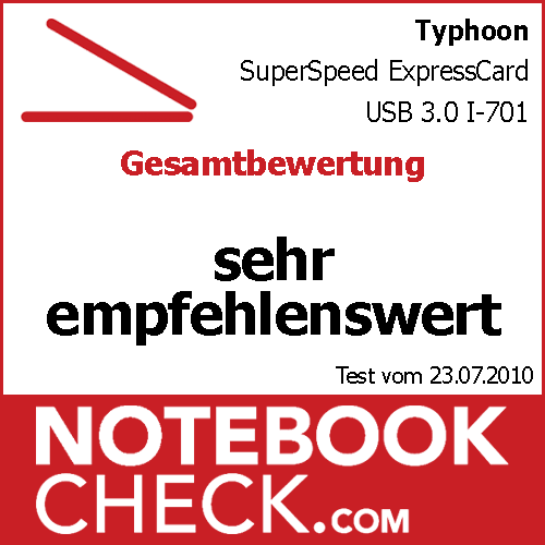 Die USB 3.0 ExpressCard/34 von Typhoon liegt auf einer Ebene mit den bereits getesteten Lösungen. Hohe Übertragungsraten und eine zusätzliche Stromversorgung ermöglichen in den meisten Fällen einen problemlosen Betrieb. Einzig der etwas hohe Preis trübt den sonst sehr guten Gesamteindruck.