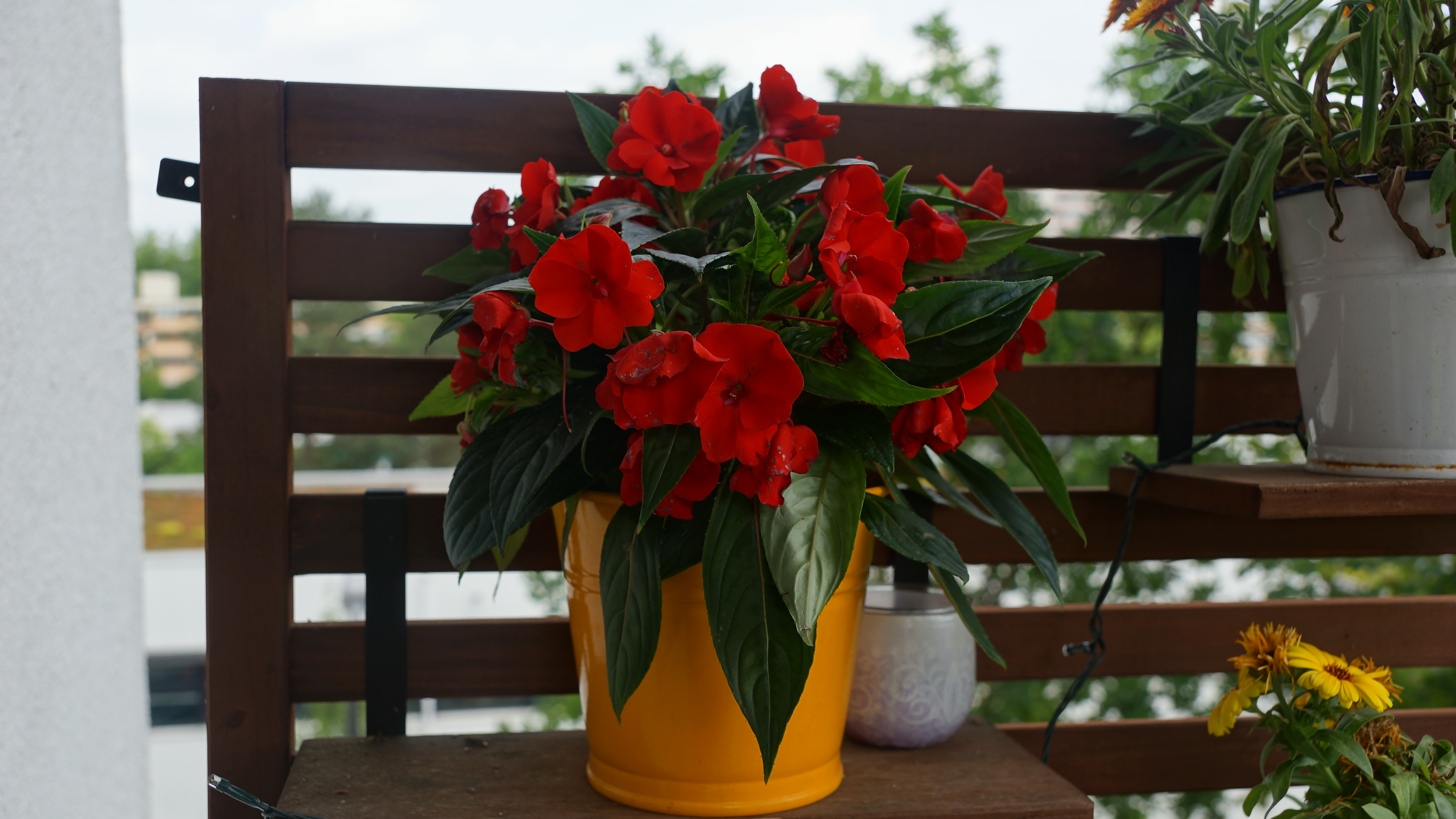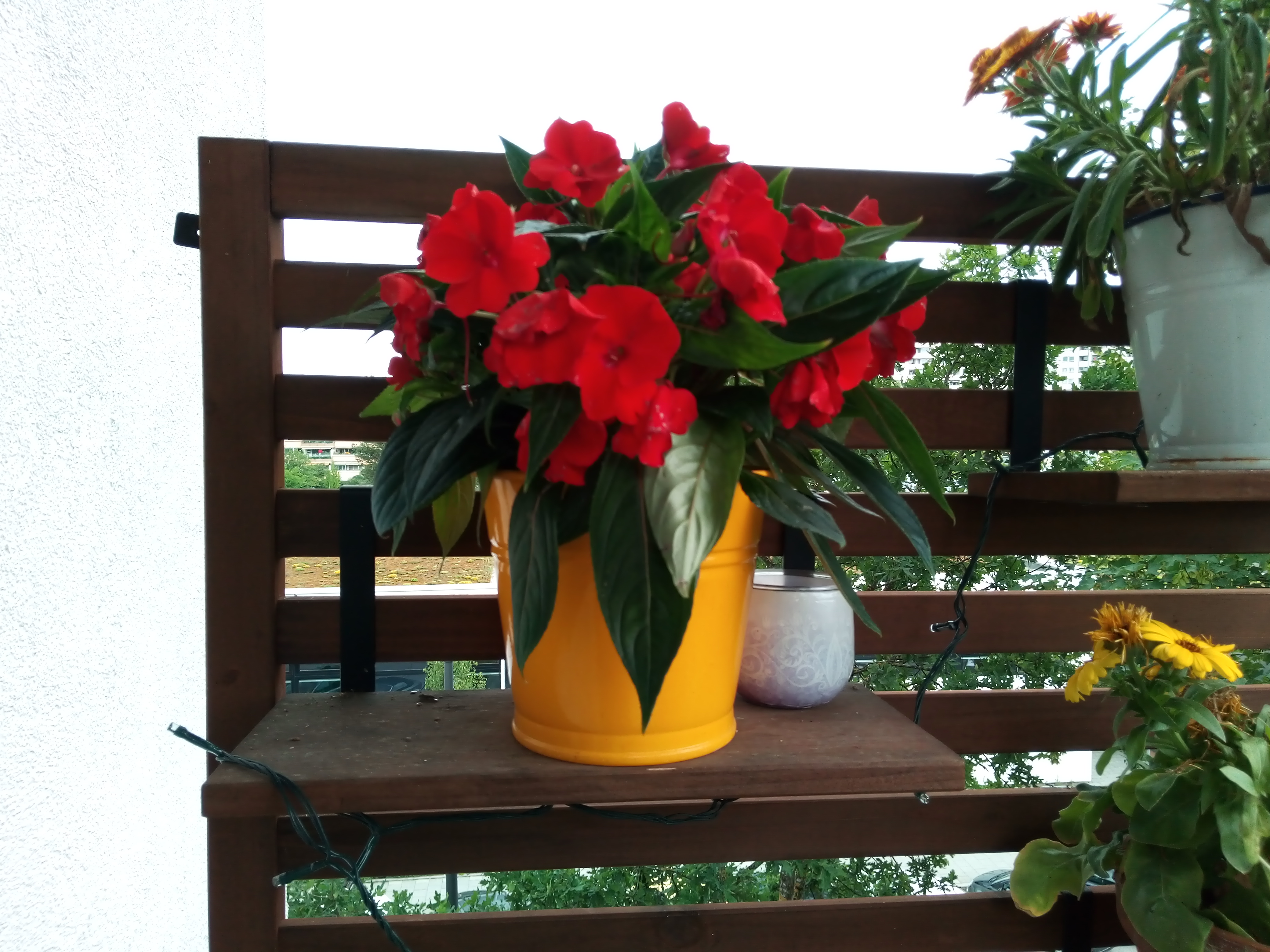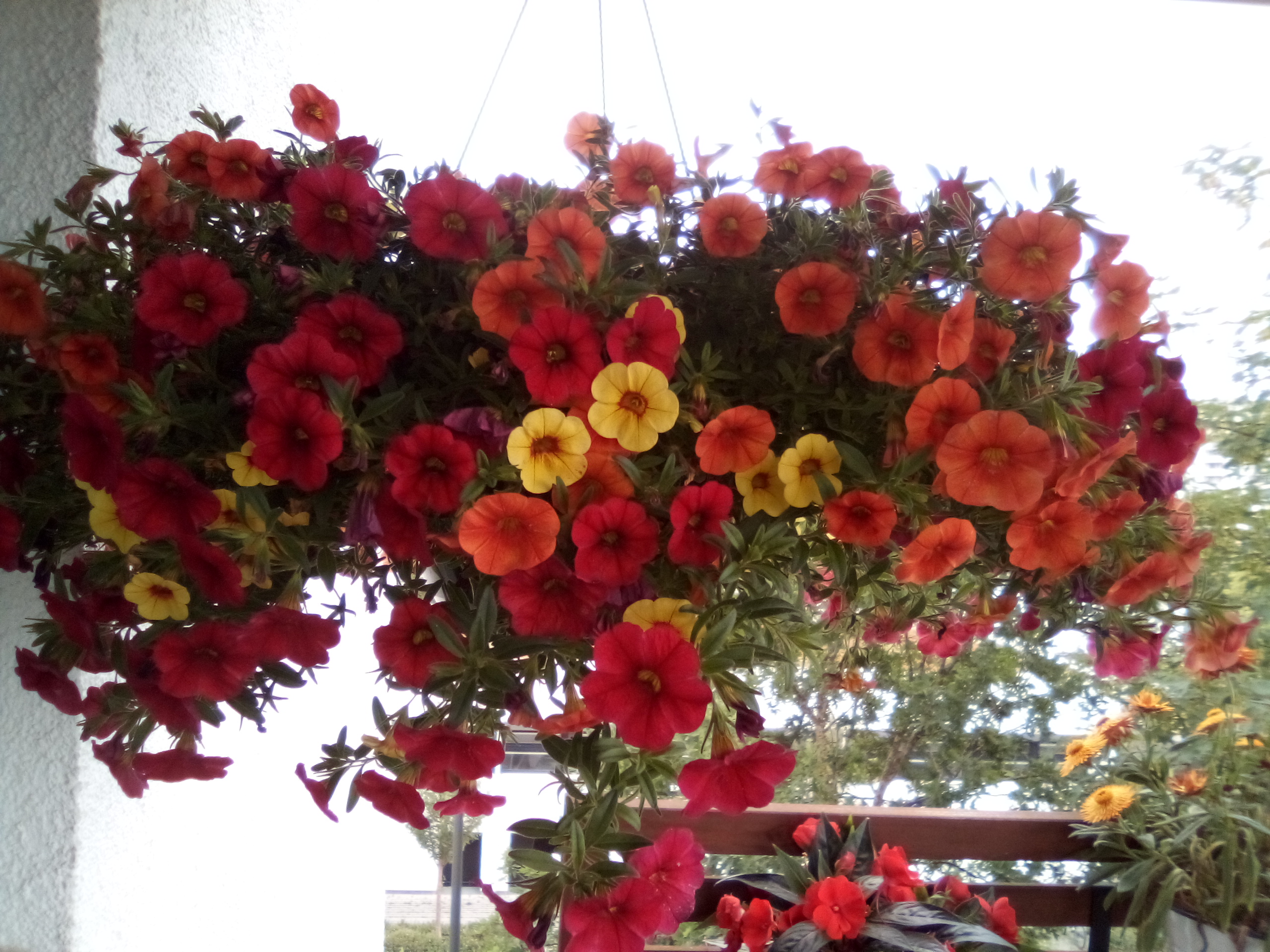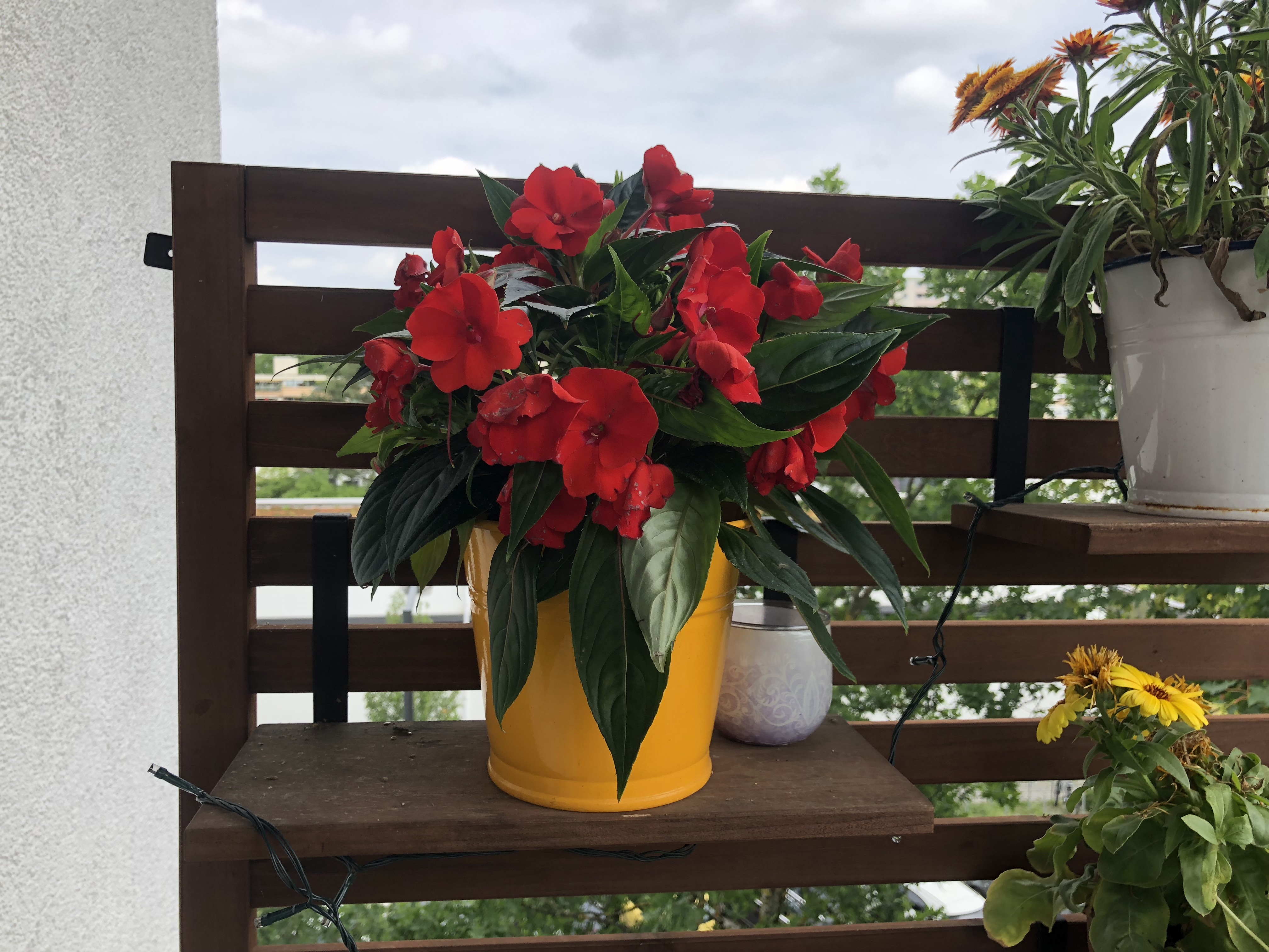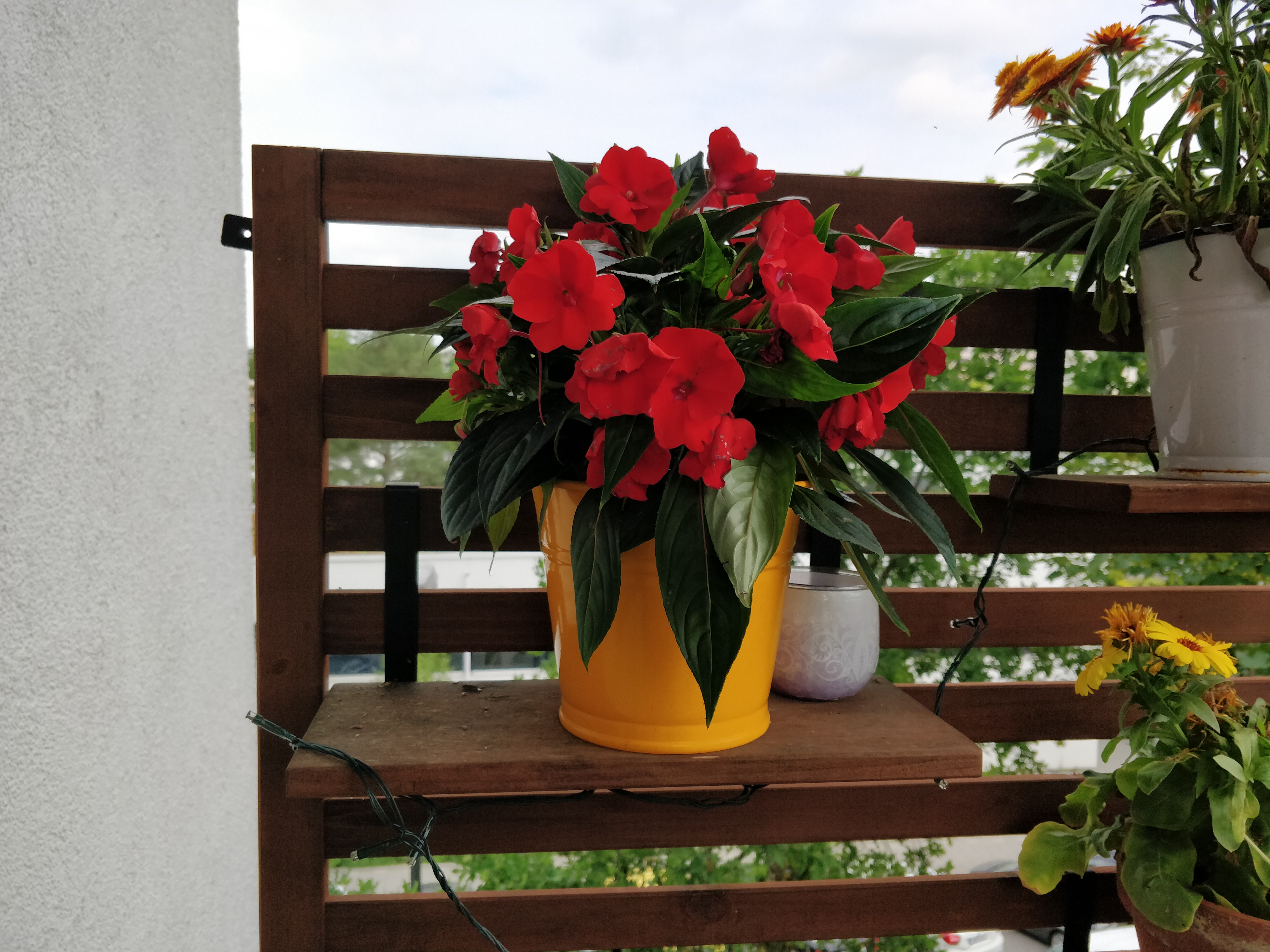 Die Frontkamera mit 5 Megapixel macht einigermaßen scharfe Aufnahmen, verfälscht aber die Farben recht stark. Dass es sich auf dem Bild um gelbe, orangefarbene und violette Blüten handelt, ist kaum zu erkennen, die meisten wirken rot. Auch überstrahlen helle Flächen sehr schnell.