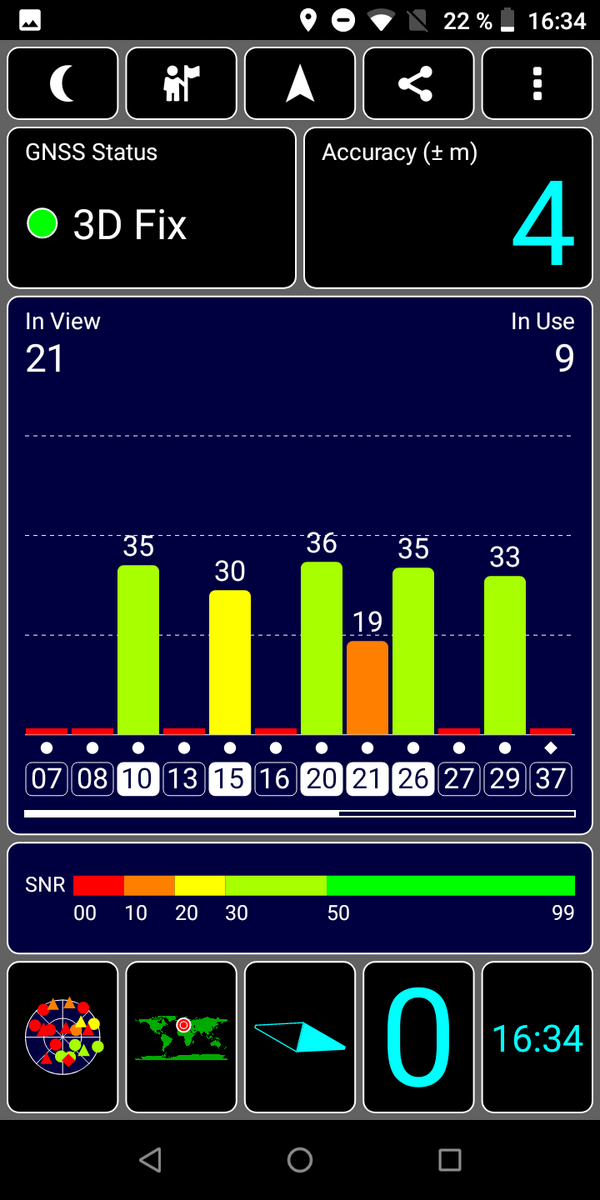 In Innenräumen kann uns das Smartphone nicht orten, im Freien wird nach einer Wartezeit eine gute Genauigkeit von bis zu 4 Metern erreicht.