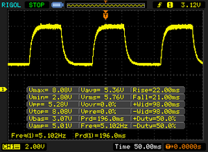 | 22 ms ... steigend ↗ und fallend ↘ kombiniert | ↗ 9 ms steigend | |