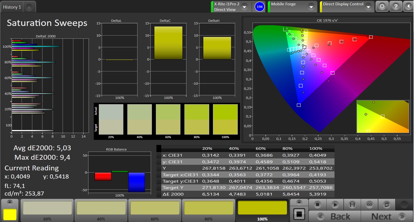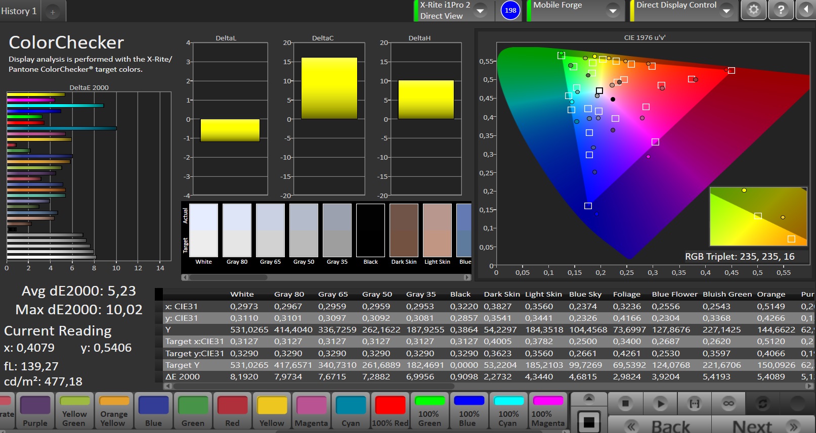 | Delta E Colorchecker * | 5.23 | 6.24 -19% | 4.2 20% | 2.3 56% | 6.09 -16% |