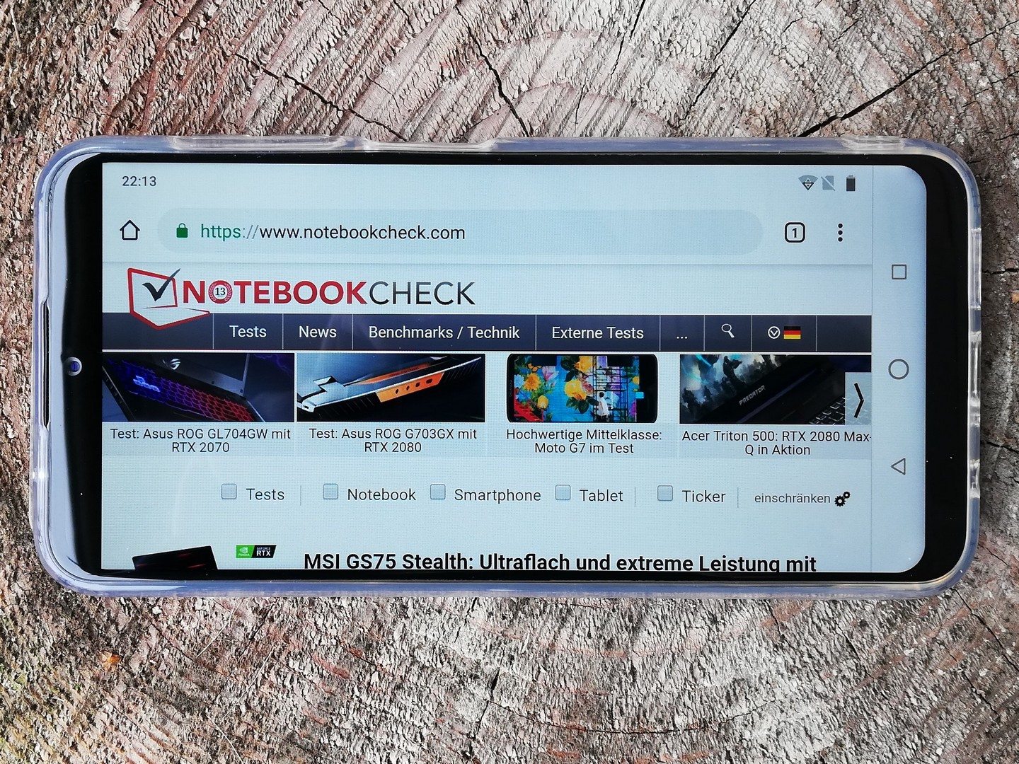 Das IPS-Panel des One Max ist sehr blickwinkelstabil. Dadurch lassen sich Inhalte auch aus sehr steilen Winkeln vom Bildschirm ablesen, ohne dass diese verzerrt oder mit verfälschten Farben dargestellt werden. Solange keine Spiegelungen von Objekten in der Umgebung die Sicht behindern, kann das Umidigi-Smartphone daher auch aus ungewöhnlichen Positionen heraus verwendet werden.