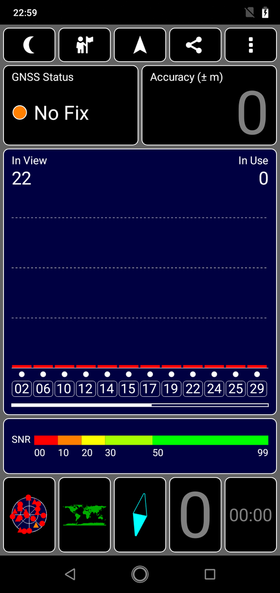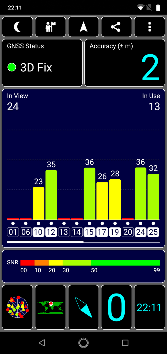 Mit der App "GPS Test" überprüfen wir, wie gut das Umidigi One Max seinen Standort bestimmen kann. Dabei zeigt sich, dass im Freien eine Ortung auf bis zu zwei Meter genau möglich ist, wohingegen in geschlossenen Räumen keine Satellitenverbindung aufgebaut werden kann.