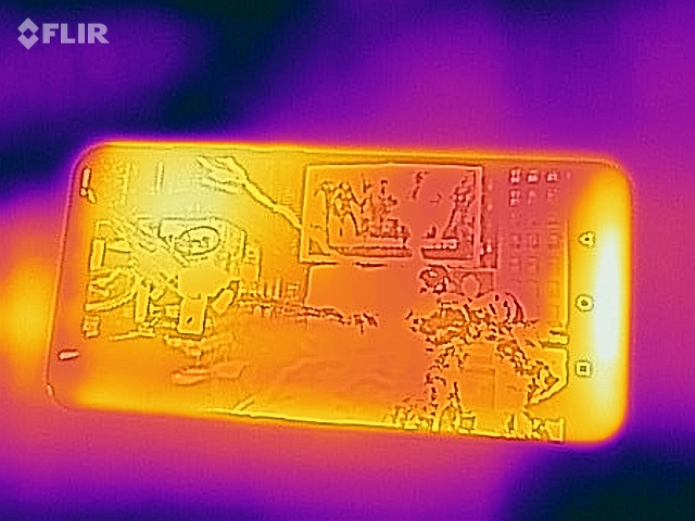 Die Oberflächentemperaturen des Umidigi Z2 bleiben im Leerlauf stets bei circa 25 °C und steigen unter Last um etwas mehr als 10 °C an. Dabei fühlt sich das Telefon lediglich handwarm, aber nie heiß an. Der anspruchsvolle GFXBench-Manhatten3.1-Test zeigt zudem, dass die Temperaturen im Inneren auch bei längerer Belastung die Systemleistung nicht negativ beeinflussen.