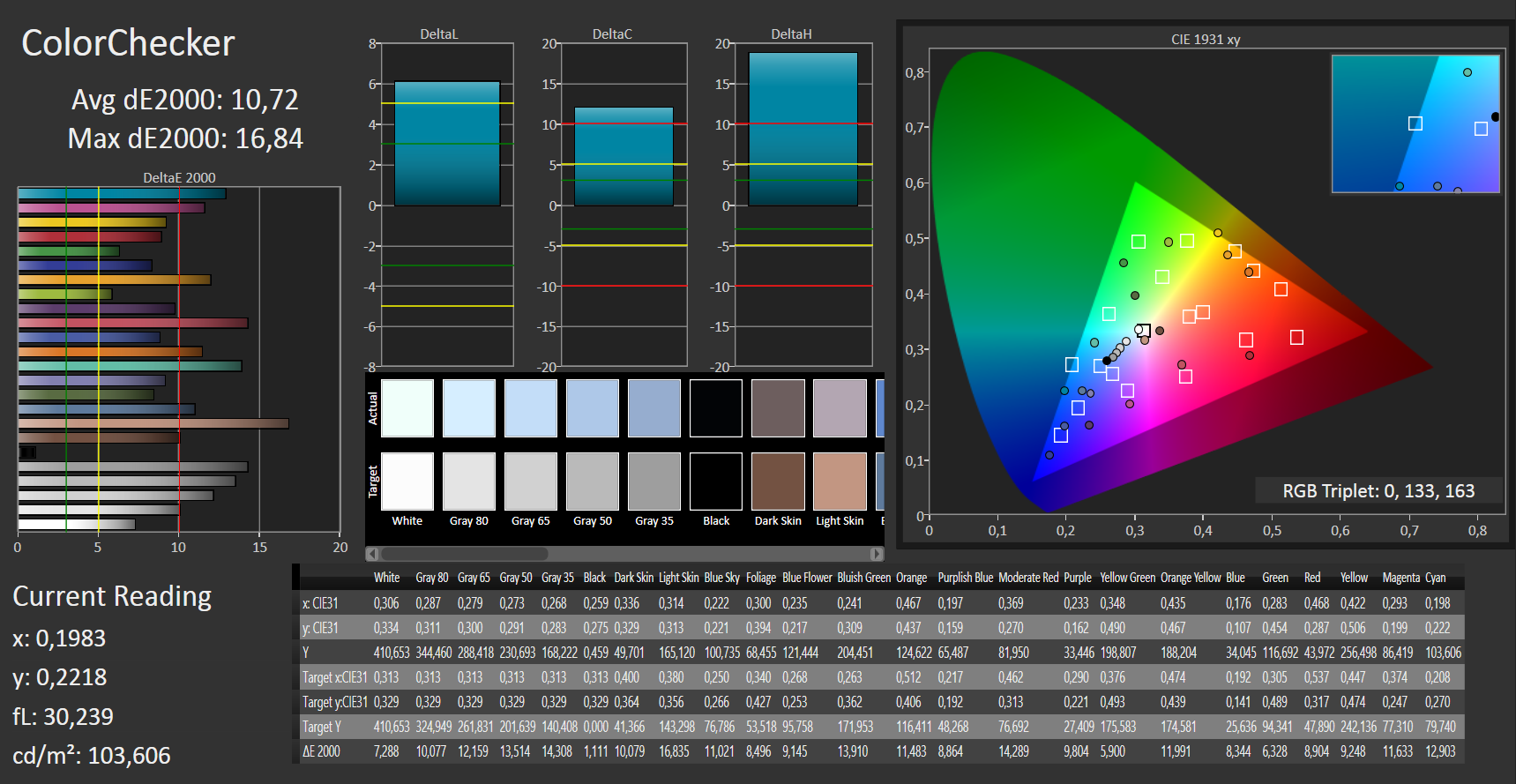 ΔE ColorChecker Calman: 10.72 | ∀{0.5-29.43 Ø4.78}