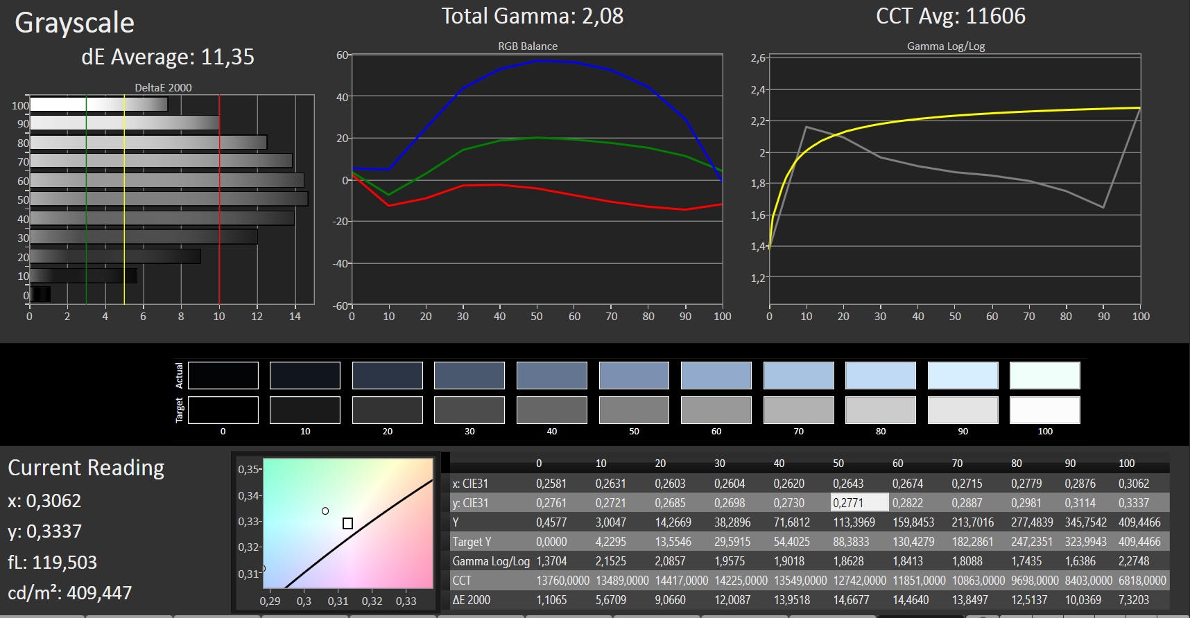 ΔE Greyscale Calman: 11.35 | ∀{0.09-98 Ø5}
