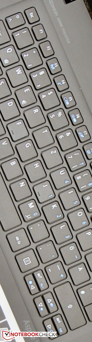 Im Idle-Modus steht der Lüfter oftmals still. Das Aspire arbeitet dann lautlos vor sich hin. Wird das Notebook gefordert, dreht der Lüfter deutlich auf. Wir messen während des Stresstests einen Schalldruckpegel von etwa 42,7 dB. Dass der Prozessor stark gekühlt werden muss, überrascht nicht. Schließlich besitzt er eine TDP von 28 Watt.