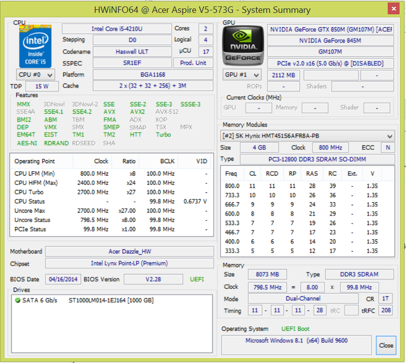 | Acer Aspire V5-573G-54218G1Taii GeForce GTX 850M, 4210U, Seagate ST1000LM014 Solid State Hybrid Drive | Acer Aspire V5-573G-54208G50aii GeForce GT 750M, 4200U, Seagate Momentus Thin ST500LT0 12-9WS142 | Asus F550LN-CN89H GeForce 840M, 4500U, Seagate Momentus SpinPoint M8 ST1000LM024 HN-M101MBB | Dell Inspiron 15-5547 Radeon R7 M265, 4210U, WDC Scorpio Blue WD10JPVX-75JC3T0 | |