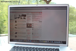 Durch die hohe maximale Helligkeit und die aufgerauhte Displayoberfläche eignet sich das MacBook Pro 17 für den Ausseneinsatz sehr gut. Im direkten Sonnenlicht sind zwar nur transreflektive Displays ohne Einschränkungen nutzbar, aber wenn die Sonne nicht direkt auf das Display scheint, ist es durchaus gut benutzbar.