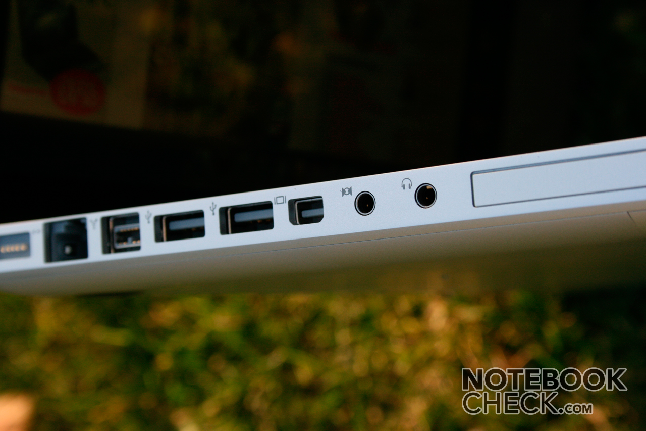 Als Besonderheit sind nun alle Anschlüsse (außer dem Kensington Lock) auf die linke Seite gewandert. Dies ist für Rechtshänder durchaus begrüßenswert, könnte aber für Linkshänder zu Beeinträchtigungen führen.