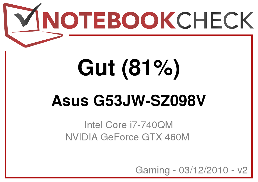 Ausgestattet mit einer Intel Core i7-720QM CPU und der GTX 460M Grafikkarte von Nvidia gab sich das von uns getestete 3D-Modell geringfügig flachbrüstiger bestückt als die im Handel befindlichen Versionen des G53JW. Im vorliegenden Full-HD Sample war nun auch die aktualisierte Intel 740QM CPU verbaut, die bei rein CPU-abhängigen Berechnungen eine Leistungssteigerung von bis zu 10% im Vergleich zum 720QM Vorgänger verspricht. Im Gaming-Betrieb fallen die Vorteile durch das CPU Refresh noch geringer aus, da hier die GPU in der Regel bei einem Erhöhen der Detailstufe zum limitierenden Faktor wird. Details dazu finden Sie auch in unserem Spezialtest der Clarksfield-Refresh CPU Palette.