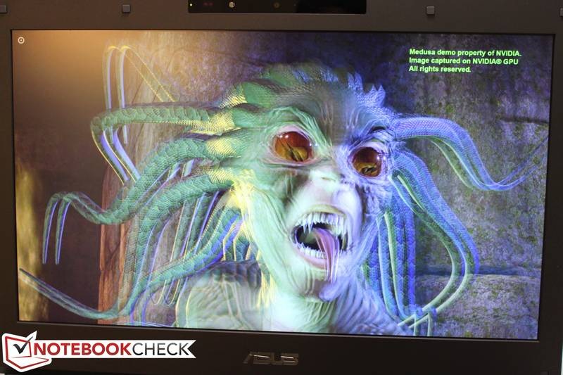 Mit Nvidias ausgereifter 3D-Technologie will sich Asus von der Konkurrenz distanzieren. Bei 3D Vision handelt es sich um ein stereoskopisches Verfahren zur 3D-Darstellung, das einen flimmerfreien Betrieb und große Blickwinkel garantiert. Am oberen Displayrahmen hat Asus direkt neben der Webcam einen kleinen IR-Sender integriert, der zur drahtlosen Kommunikation mit der beiliegenden Shutter-Brille dient. Ist der 3D-Modus aktiv, blendet die Shutter-Brille die beiden, auf dem Bildschirm angezeigten, „Halbbilder“ so ab, dass der Nutzer einen dreidimensionalen Effekt wahrnimmt (durch die leicht verschobene Perspektive der beiden Halbbilder wird das menschliche Sehen überlistet).