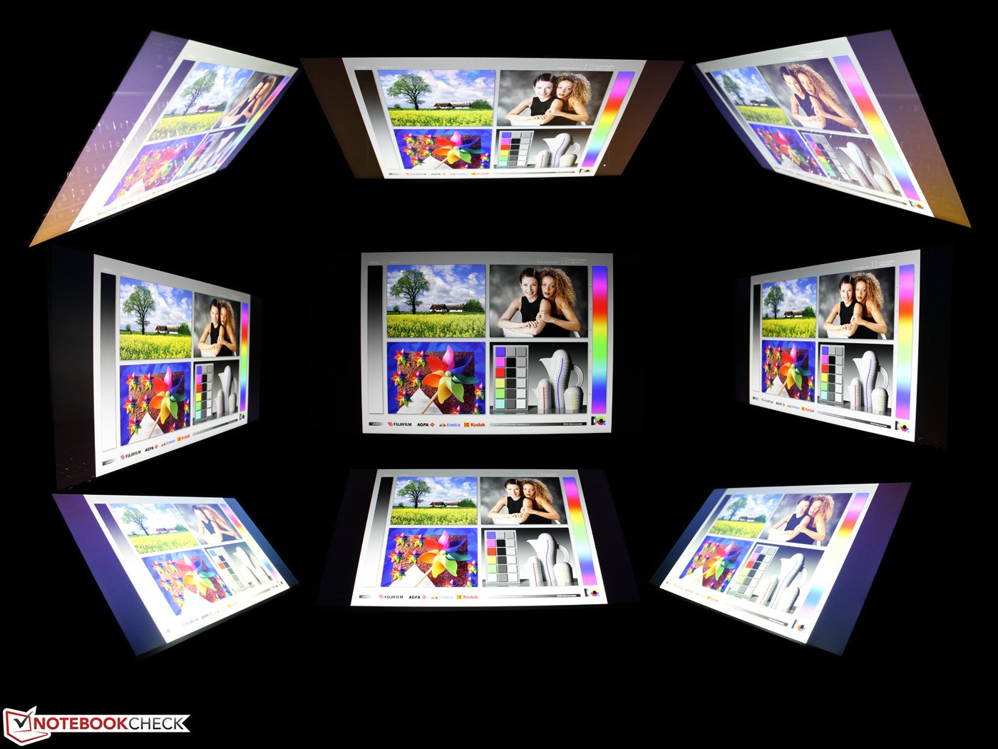 Blickwinkel sind nach wie vor die große Stärke des IPS-Typs. Vertikale Einblicke von oben oder unten, die ein TN-Panel schon ab 20 Grad abwürgt, sind hier bis 70 Grad ohne Farbinvertierungen möglich. Lediglich eine gewisse Blässe tritt bei sehr flachen Winkeln auf. Horizontal treten Geisterbilder erst ab 85 Grad in Aktion.
