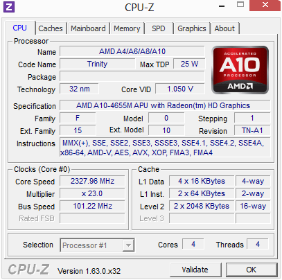 Der Trinity basierte AMD A10-4655M (2–2,8 GHz) ist ein Quad-Core für mittelgroße Notebooks. Die 32-Nanometer-APU wurde Mitte 2012 vorgestellt. Weil sie jedoch selten verbaut wurde, haben wir sie jetzt erst im Test. Das VivoBook U38DT hat die Schwester-APU A8-4555M (4-Kern, 1,6–2,4 GHz) an Bord. Die Performance dürfte sich deutlich unterscheiden, die Takt-Erhöhung wird jetzt durch einen TDP von 25 Watt erkauft (A8 19 Watt).