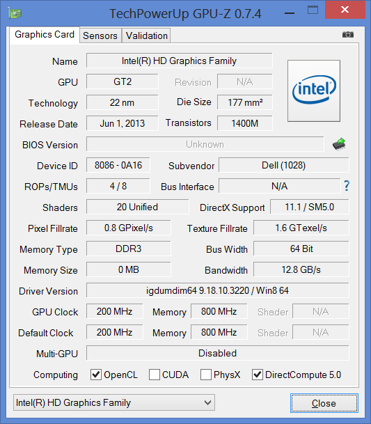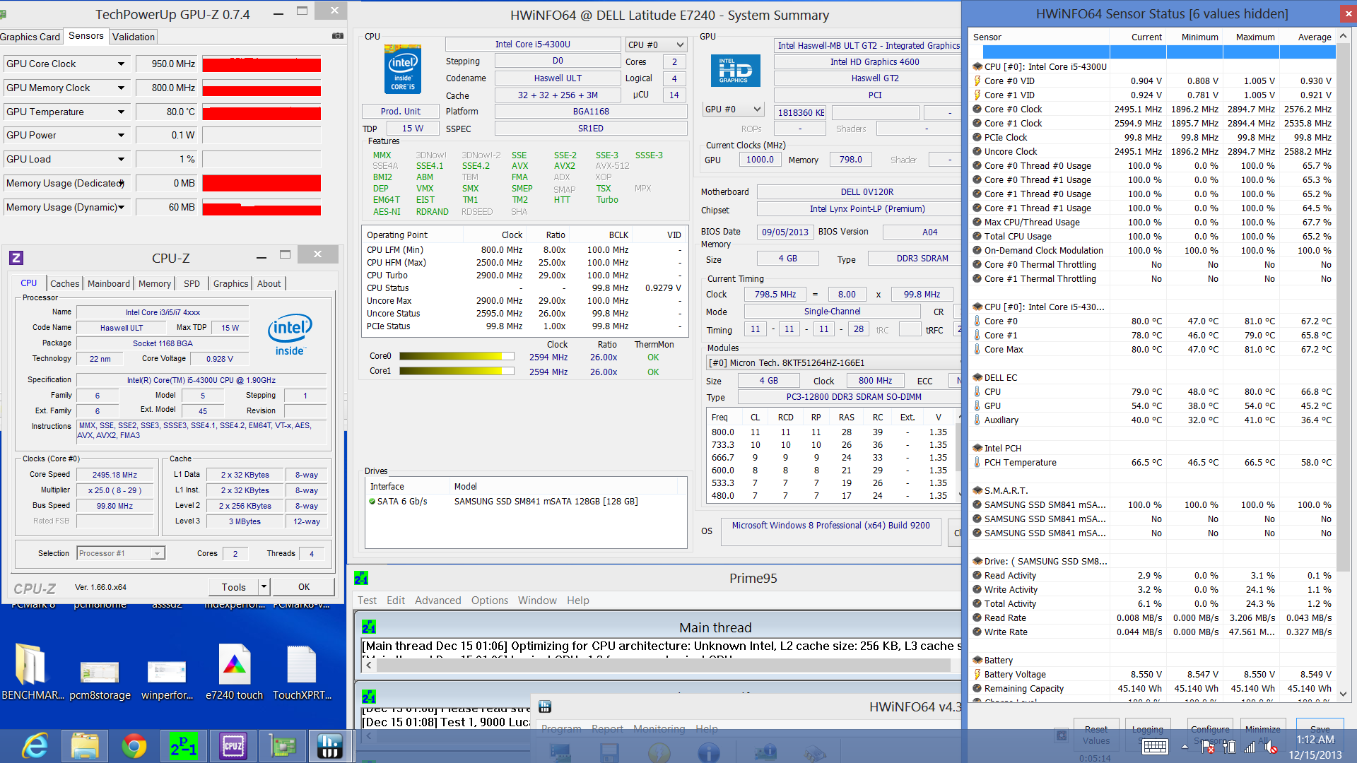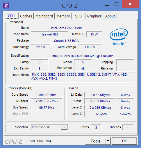 Im Vergleich zum originalen Modell ist das E7240 Touch mit einem etwas besseren Prozessor ausgestattet (Core i5-4300U vs. Core i5-4200U). Die kleineren Konfigurationen verwenden standardmäßig einen i3-4010U, während in den High-End-Versionen ein i7-4600U zum Einsatz kommt. Verglichen mit dem i5-4200U läuft der i5-4300U in unserem Testgerät mit 300 MHz mehr (1,9 GHz vs. 1,6 GHz). Ansonsten unterscheiden sich die beiden CPUs aber nicht, denn sie verfügen über den gleichen Cache, dieselbe Anzahl an Kernen, dieselbe TDP und die integrierte HD 4400 GPU.