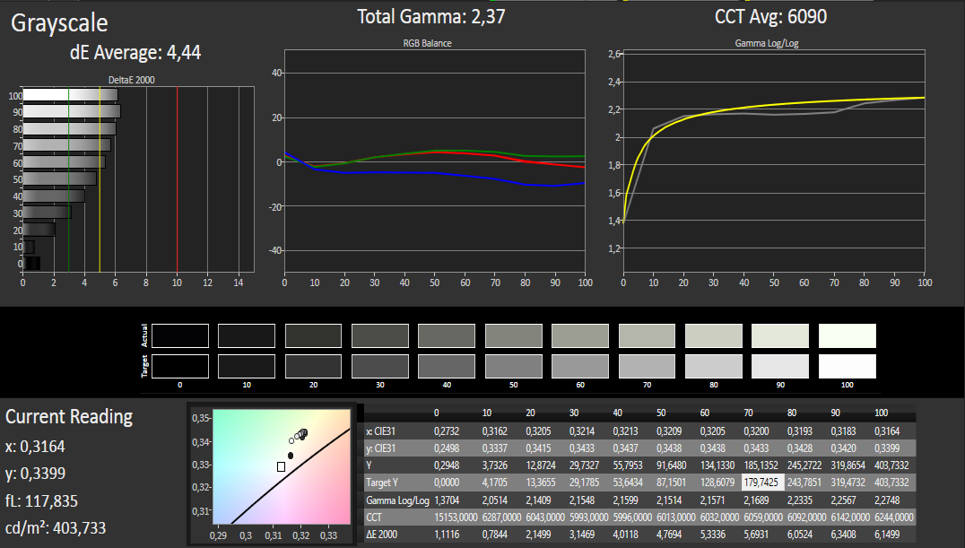 ΔE Greyscale Calman: 4.44 | ∀{0.09-98 Ø5}
