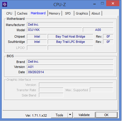 | Dell Venue 8 Pro 3845 HD Graphics (Bay Trail), Z3735G, 32 GB eMMC Flash | Dell Venue 8 Pro 3845 HD Graphics (Bay Trail), Z3735G, 32 GB eMMC Flash | Dell Venue 8 Pro HD Graphics (Bay Trail), Z3740D, 32 GB eMMC Flash | Toshiba WT8-B-102 HD Graphics (Bay Trail), Z3735G, 32 GB eMMC Flash | Lenovo ThinkPad 8 HD Graphics (Bay Trail), Z3770, SanDisk SEM64G | Point of View WinTab 800W HD Graphics (Bay Trail), Z3735G, 16 GB eMMC Flash | |