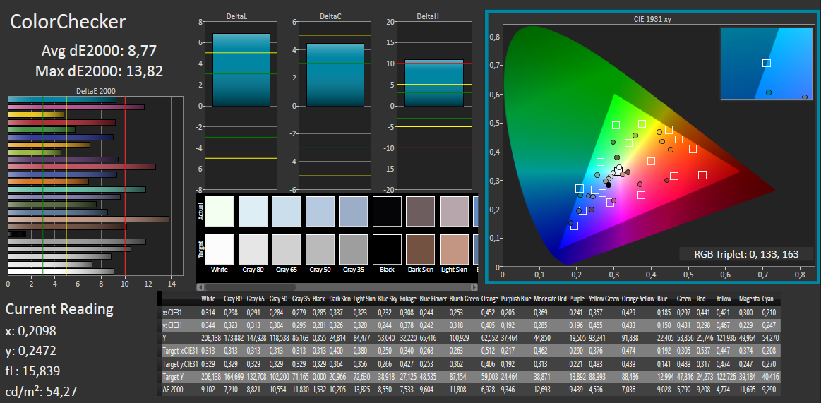 ΔE ColorChecker Calman: 8.77 | ∀{0.5-29.43 Ø4.78}