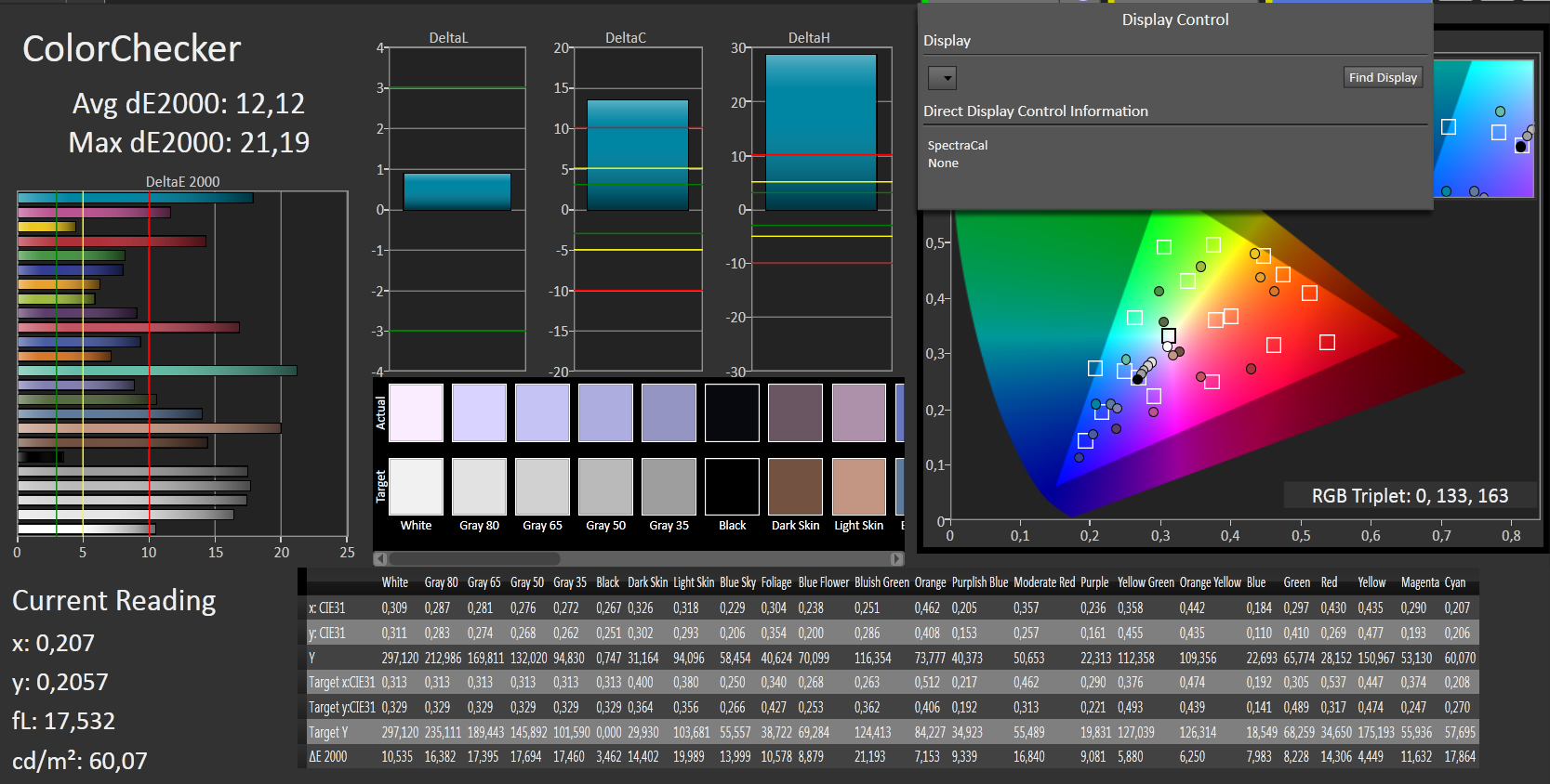 ΔE ColorChecker Calman: 12.12 | ∀{0.5-29.43 Ø4.78}
