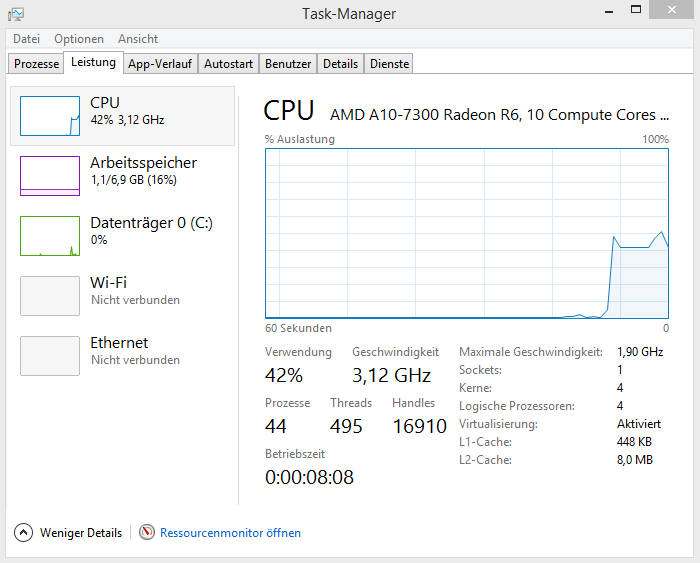 Betrachtet man nur die subjektive Alltags-Performance, so muss sich das Z50-75 nicht vor der Intel basierten Konkurrenz verstecken – die reaktionsschnelle SSHD bietet in vielen Situationen einen höheren Mehrwert als ein schnellerer Prozessor. So ist das Betriebssystem direkt nach dem Bootvorgang ohne weitere Verzögerungen bedienbar, während man bei Festplatten ohne SSD-Cache zumeist noch gewisse Wartezeiten einplanen muss. Ebenfalls loben wollen wir den 8 GB großen Arbeitsspeicher, der sich insbesondere bei Multitasking mit komplexer Software als äußerst nützlich erweist.