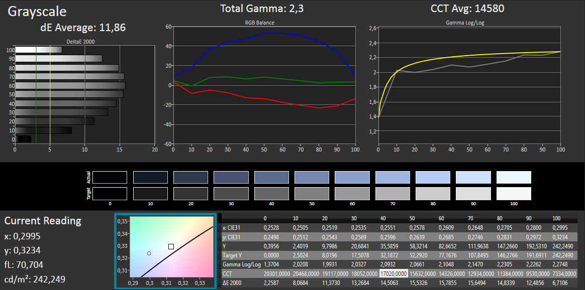 ΔE Greyscale Calman: 11.86 | ∀{0.09-98 Ø5}