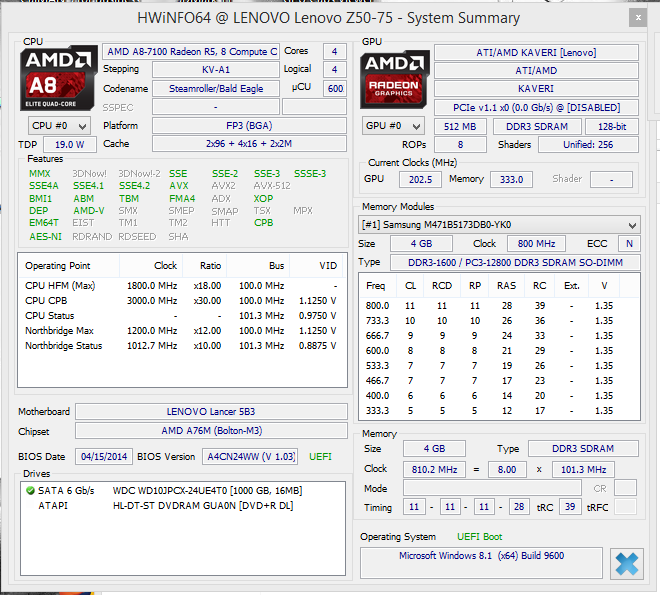 Test-Update Lenovo IdeaPad Z50-75 (A8-7100, R6 M255DX) Notebook