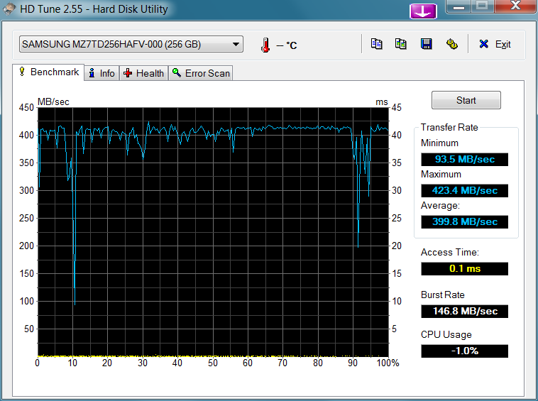 Wie bereits im Kapitel Systemleistung angesprochen, sorgt das vom Händler nachgerüstete Solid State Drive für ein sehr gutes Geschwindigkeitsgefühl. Mit sequentiellen Transferraten von 514 MB/s beim Lesen und 240 MB/s beim Schreiben, sehr kurzen Zugriffszeiten und einer praxisgerechten Kapazität von 256 GB (brutto), finden wir im Vergleich zur konventionellen Festplatte fast nur gewichtige Vorteile. Lediglich der Preis, und damit das Euro-pro-Gigabyte-Verhältnis, fallen spürbar schlechter aus.