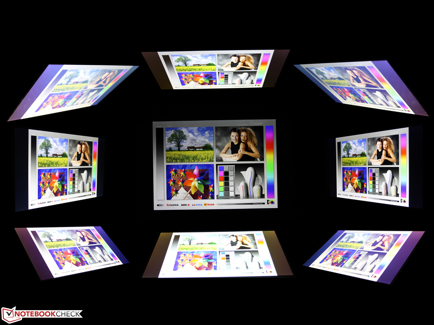 Während ein TN-Panel selbst kleine Kopfbewegungen mit starken Bildveränderungen quittiert, erlaubt die IPS-Technologie weitaus stabilere Blickwinkel. Allerdings gibt es auch hier gewisse Qualitätsunterschiede: Ab einem Winkel von etwa 30 Grad zur Senkrechten werden beim ThinkPad feine Farbverschiebungen sowie eine leichte Helligkeitsabnahme erkennbar – das können einige Konkurrenten noch etwas besser. Dennoch wollen wir betonen, dass die Anzeige diesbezüglich noch immer jedes TN-Display übertrifft.
