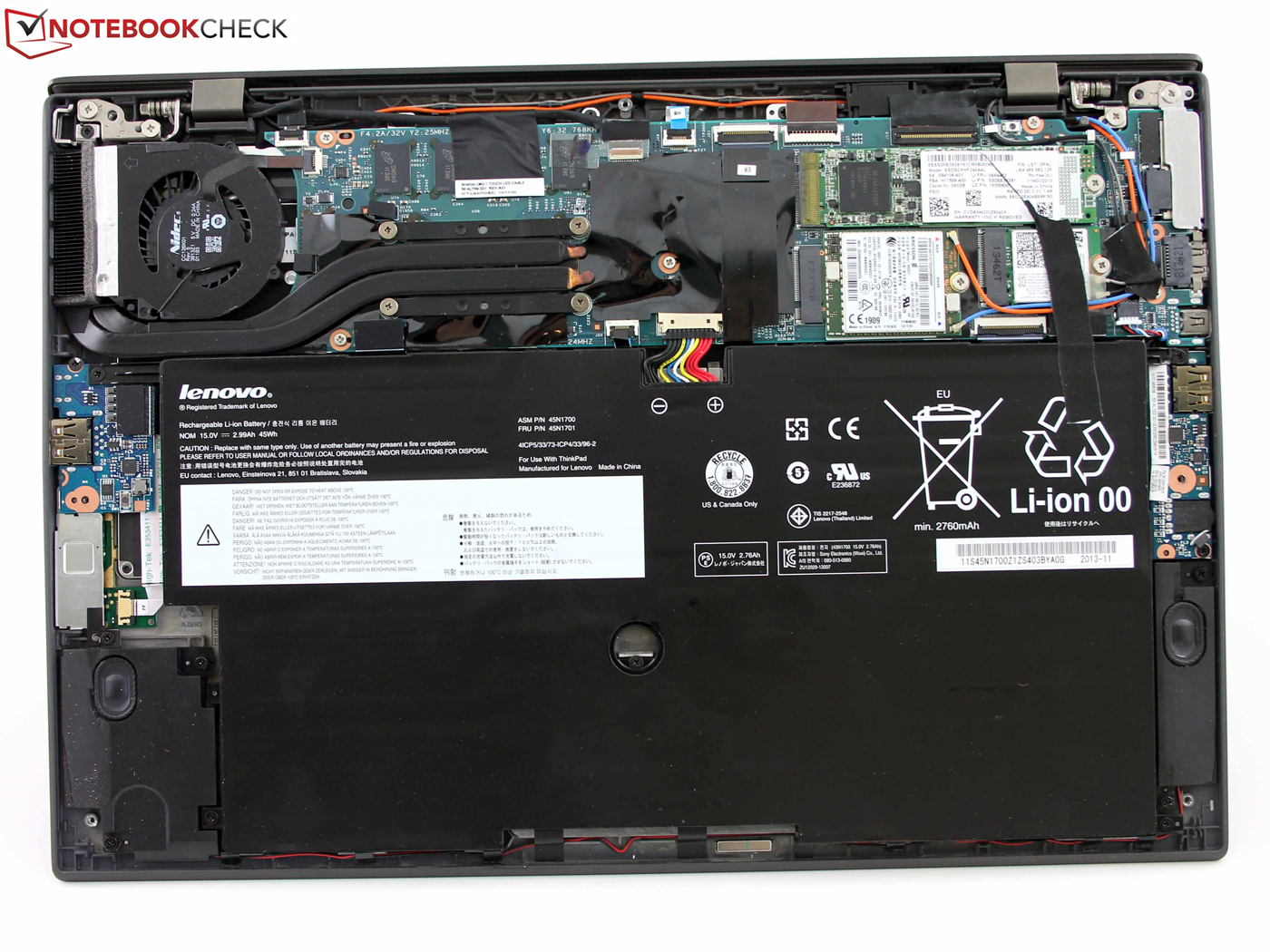 Das X1 Carbon wird ausschließlich mit einem integrierten 45-Wh-Akku angeboten, der laut Lenovo Laufzeiten von bis zu 9 Stunden erlaubt. Im Battery Eater Reader's Test (Energiesparmodus, minimale Helligkeit, Funkmodule aus) übertrifft unser Proband diese Angabe sogar noch deutlich und muss erst nach über 12 Stunden die Segel streichen. Wirklich realistisch ist ein derartiges Leerlauf-Szenario natürlich nicht unbedingt.
