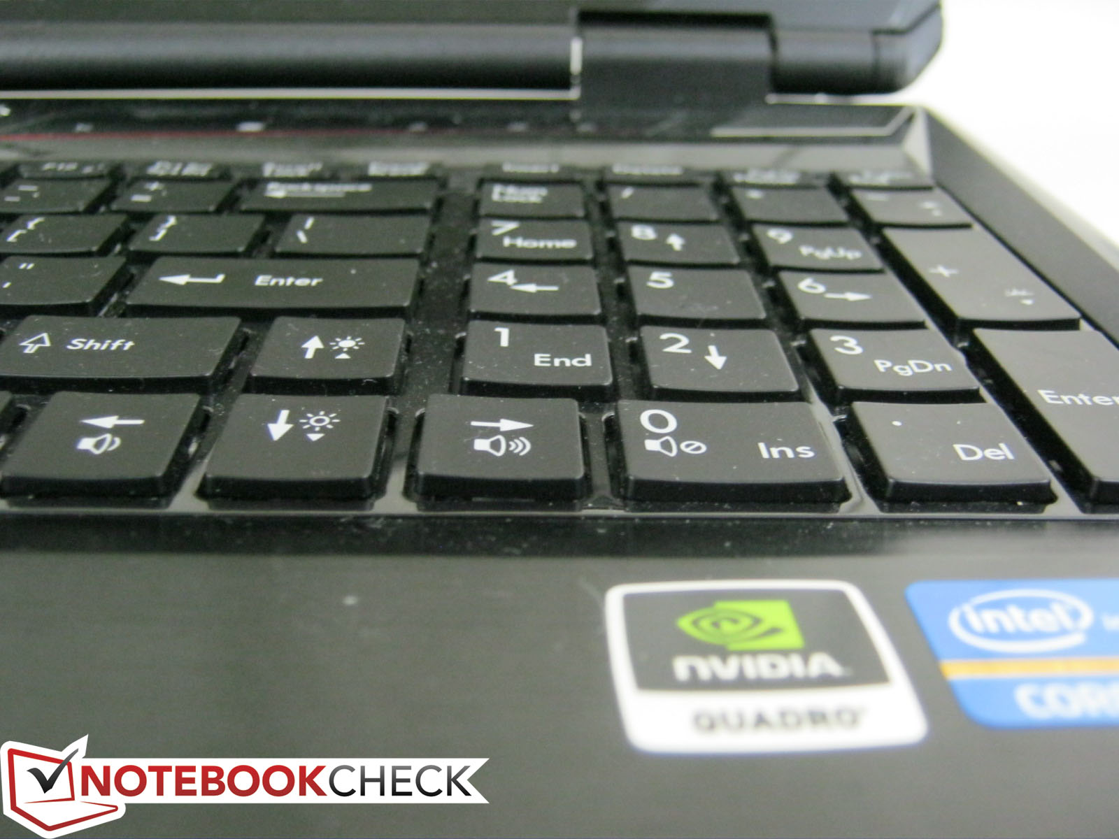 Die Chiclet Tastatur (35 cm x 11 cm) mit Hintergrundbeleuchtung von SteelSeries ist, wie in unserem vorigen Test, sowohl für Spiele als auch für Textverarbeitung gut geeignet. Die Tasten haben einen kurzen Hubweg, doch sie fühlen sich anders an und weisen ein zufriedenstellendes Feedback und einen deutlichen Druckpunkt auf. Das Layout ist bei allen Tasten mehr oder weniger gleich, doch die rechte Seite kann aufgrund der etwas unüblich kürzeren 'Enter'-, '0'- und Richtungstasten etwas gedrängt wirken. Wie üblich passen sich User jedoch mit der Zeit an alle Layout-Feinheiten an.