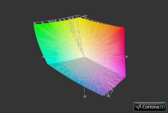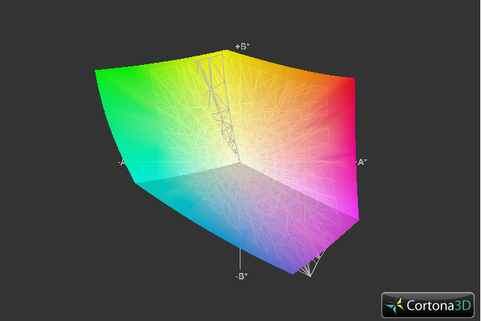 Die Farbdarstellung wurde mit einem i1 Display 2 gemessen und mit einigen Workstations und Farbraum-Standards verglichen (siehe Bilder unten). Wie bei hochwertigen Workstations üblich, kann das GT60 viel von AdobeRGB abdecken. Hier wird offensichtlich, warum sich MSI für einen anderen Bildschirmhersteller für die GT60 Workstation entschieden hat, denn der Bildschirm des zuvor getesteten GT60 Gaming Models konnte kaum sRGB vollständig abdecken. Leider leidet die MSI Workstation unter dem gleichen Problem wie das ThinkPad W530. Die Abdeckung des sRGB Spektrums ist im Blau-Magenta-Bereich nicht vollständig. Daher könnten professionelle Digitalkünstler, die zumindest eine volle sRGB-Abdeckung benötigen, von der kleinen, jedoch wichtigen Abdeckung enttäuscht sein. HPs EliteBook 8770w bietet eine bessere Farbreproduktion, doch kostet dieses 17,3-Zoll-Gerät auch mehr als das Doppelte.