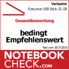 Der Verbatim Executive Stick hält nicht das, was er verspricht. Gerade hochkapazitive Sticks benötigen Geschwindigkeit, damit der große Datentransfer nicht zur endlosen Geduldsprobe wird. Maximal 17 MB/s Lesegeschwindigkeit ist da deutlich weniger als angegeben und lässt ein erhofftes Kaufargument im Nu zerplatzen. Ansonsten überzeugt der kleine Stick mit geringem Gewicht, betriebssystemtauglicher 32 GB Kapazität und einem in dieser Leistungsklasse guten Preis/ GB Verhältnis.