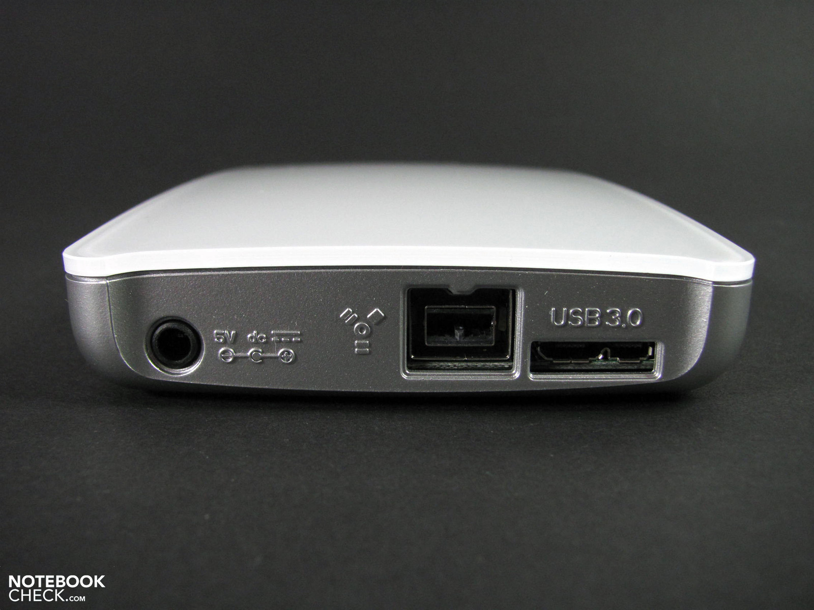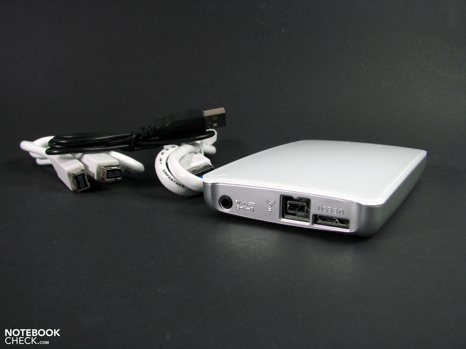 Verbatim bietet das aus Kunststoff gefertigte Testmodell in weiß oder schwarz ab etwa 90,- Euro an. Die Gehäusemaße bewegen sich mit 131 x 80 x 20 mm im üblichen Rahmen und auch das Gewicht von 210g kommt dem mobilen Einsatz entgegen. Die Gehäusefestigkeit ist gut, die Farbkombination aus weiß und Silber ist recht pflegeleicht und verbirgt gut kleine Kratzer und Fingerabdrücke. Am Heck befinden sich die FireWire 800 und USB 3.0 Anschlüsse sowie ein zusätzlicher Netzanschluss, der über USB 2.0 eine zusätzliche Stromversorgung bereitstellt. Alle notwendigen Kabel sind mit im Karton.