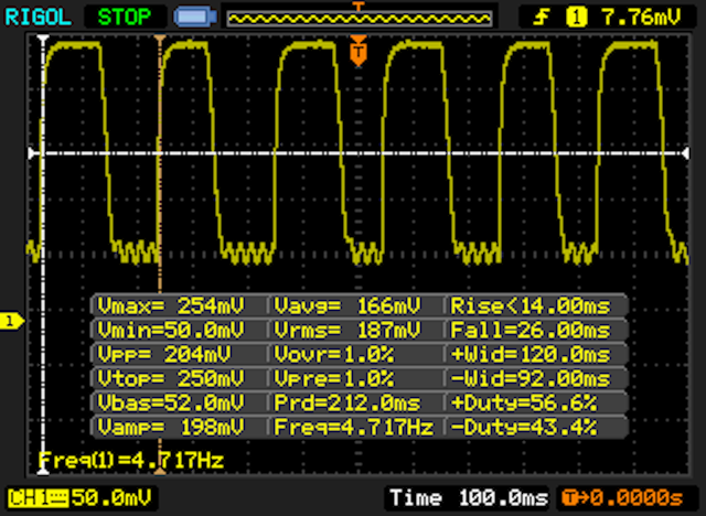 | 62 ms ... steigend ↗ und fallend ↘ kombiniert | ↗ 21 ms steigend | |