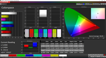 Die Analyse mit einem Fotospektrometer und der CalMAN Software zeigt in der Standard-Farbtemperatur für die Preisklasse durchschnittliche Abweichungen in der Farb- (7,1) und Graustufendarstellung (6,7). Die gemessene Farbtemperatur liegt mit 7.711 Kelvin etwas über dem Idealwert von 6.500 Kelvin.
