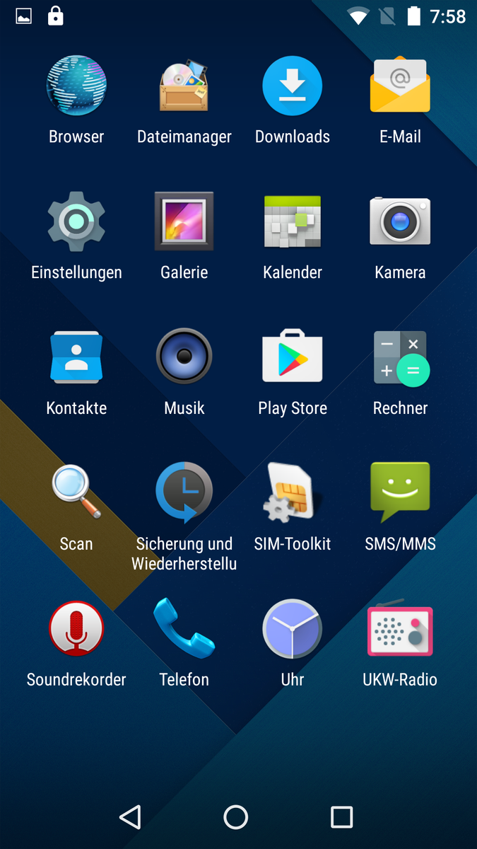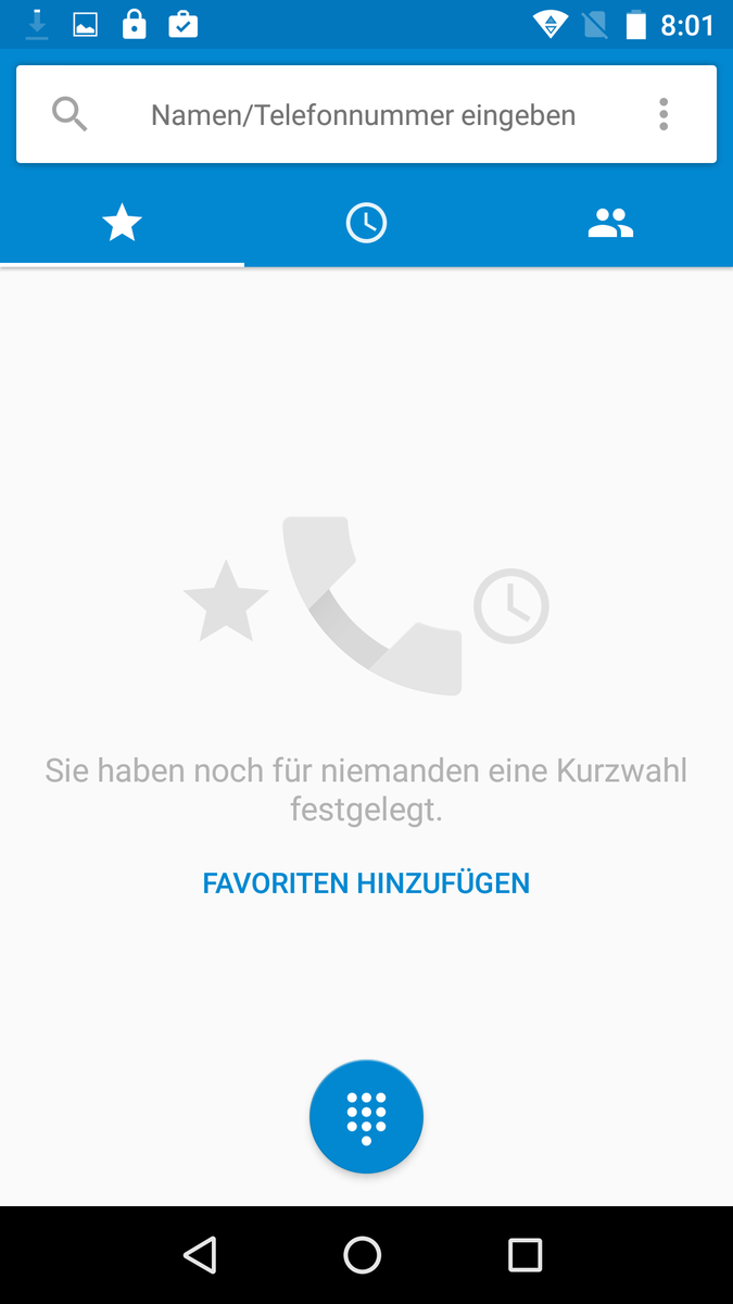 Die Telefon-App entspricht dem Standarddesign von Android 6.0. Neben einer Kurzwahl-Funktion verfügt die Anwendung über Anruflisten sowie einen direkten Zugriff auf die gespeicherten Kontakte.