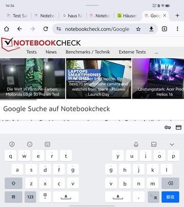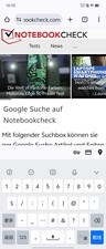 Die kapazitiven Touchscreens reagieren schnell, ab Werk ist auf beiden Bildschirmen eine Schutzfolie angebracht. Bei dem 8,03 Zoll großen Innenbildschirm sollte diese nicht entfernt werden, sodass hier nie das Gefühl aufkommt, eine Glasoberfläche zu bedienen. Animationen und Scrollen sind durch die 120-Hz-Panels sehr flüssig dargestellt.