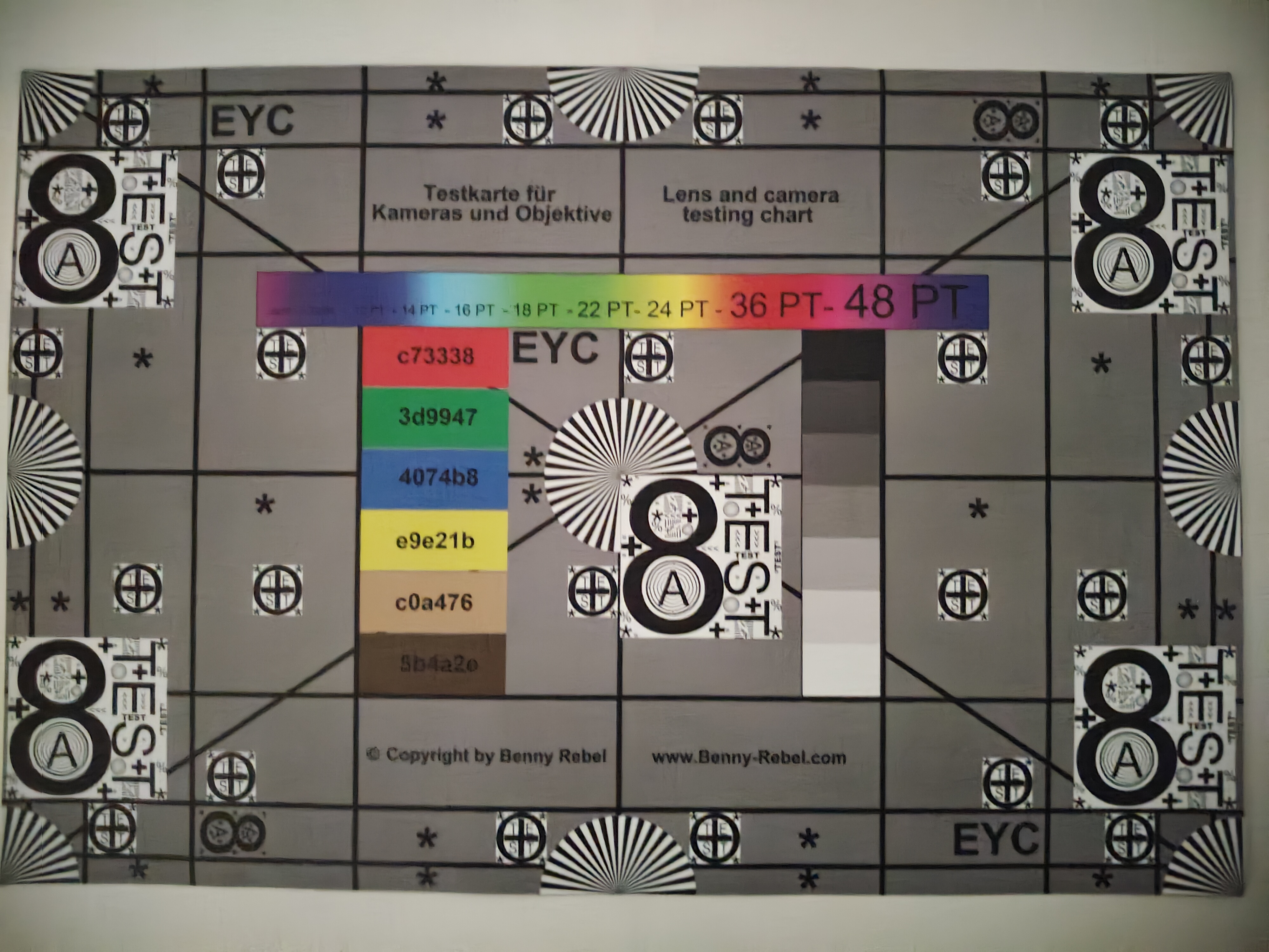 | Colorchecker dE 2000 max. * | 2.8 | 14 -400% | 2.7 4% | 1.3 54% | 3.6 -29% |