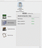 Obwohl Thunderbolt mittlerweile auch vermehrt in Windows-Notebooks und auf Mainboards auftaucht, wird Western Digitals My Book Thunderbolt Duo derzeit nur für den Gebrauch in Macbooks unterstützt. Am Mac Mini wird der externe Massenspeicher sofort erkannt und angezeigt. Die Western Digital Drive Utilities befinden sich auf dem Laufwerk und können wie üblich einfach in den Programm-Ordner gezogen werden. Eine Windows-Version gibt es wie gesagt nicht. Die Funktionen der Utilities umfassen eine Löschfunktion, die RAID-Verwaltung und ein Diagnosetool. Als RAID-Optionen stehen RAID 0 (hohe Geschwindigkeit, Daten werden auf beide Festplatte verteilt), RAID 1 (Spiegelung der Daten zur Erhöhung der Ausfallsicherheit) und JBOD (beide Festplatten werden als Einzellaufwerke angesprochen) zur Verfügung. Hat man eine zweite Thunderbolt Duo zur Verfügung, so kann man alle 4 Laufwerke zusammenfassen, was zu einer weiteren Erhöhung der Geschwindigkeit (RAID 0) führen sollte.