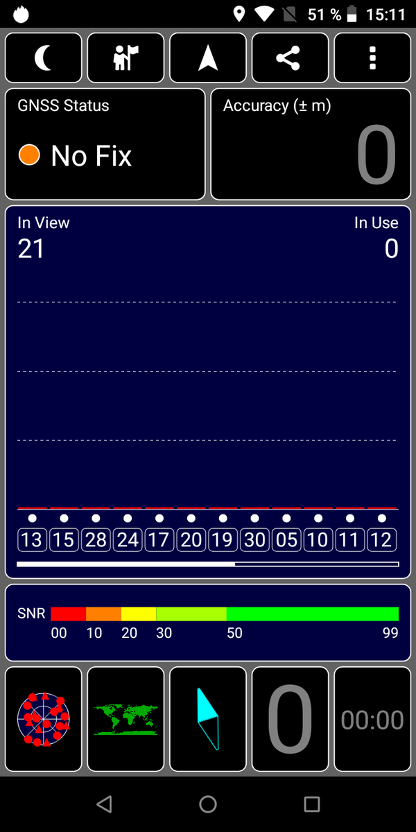 In Innenräumen kann uns das GPS-Modul nicht orten, im Freien wird aber nach kurzer Verzögerung eine gute Genauigkeit von 5 Metern erreicht.
